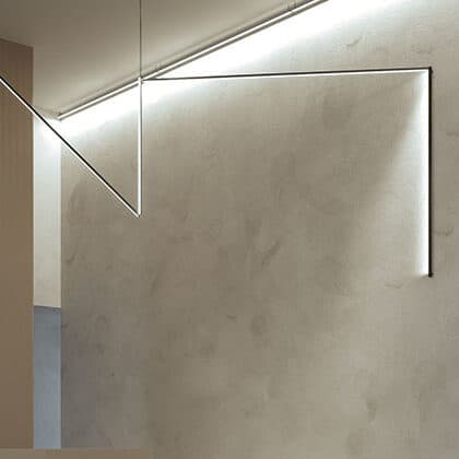 - Sistema linear de iluminação difusa, direta ou indireta, em perfil de alumínio extrudado de sobrepor. O sistema é fornecido com os perfis, conexões, fitas Led, drivers e bases para drivers remotos (quando necessário). Apenas as microcanoplas e as cordoalhas deverão ser especificadas à parte. Pode ser instalado como plafon, arandela ou pendente ou de formas múltiplas com várias tipologias em um único sistema. O sistema é fornecido sob encomenda com qualquer comprimento, embora o comprimento máximo para que não haja junção de perfis seja de 3 metros por módulo.